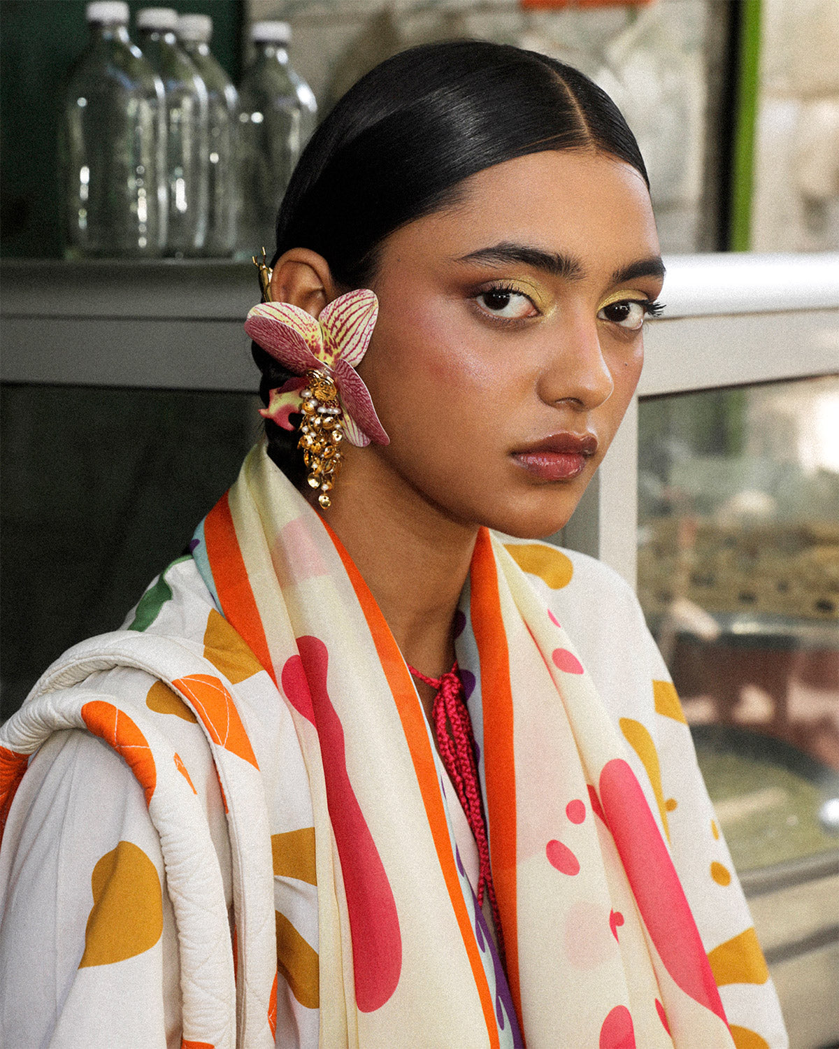 Product Description:Step into timeless elegance with Aura, a stunning ivory ensemble adorned with a delicate pebbles print. The shirt features intricate tassel details on the sleeves and neckline, complemented by a contrasting pebbles print on the back, exuding sophistication from every angle. Paired with ivory culottes boasting a printed hem panel for added flair and comfort, and accompanied by a luxurious pebbles print silk scarf, Aura effortlessly combines contemporary style with classic charm. Perfect for both daytime events and evening soirées, this ensemble ensures you radiate confidence and grace with every step, making it a standout choice for any occasion.